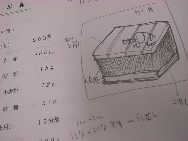 先月の和菓子講習会で教えていただいたお菓子(のスケッチ)です。