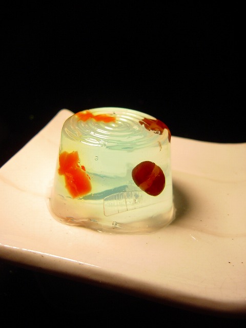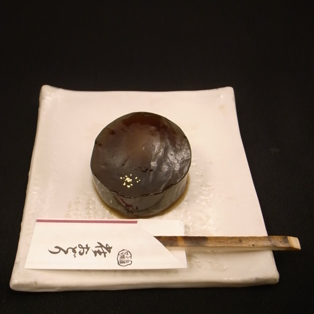 当店の焼き菓子、叢樹菓(ラム酒風味のチョコフルーツパウンドケーキ)をアツアツの状態でグラスに入れて、白玉、小倉餡、アイスクリーム、バナナを添えました。