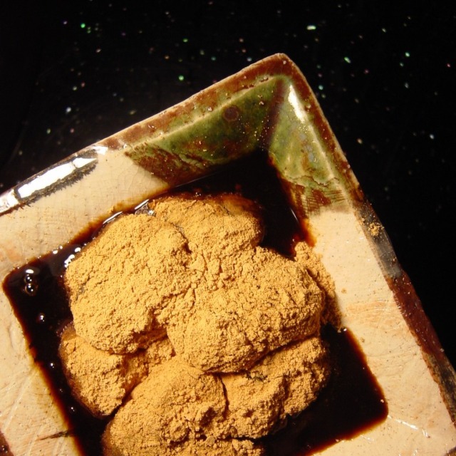 アイスクリームが溶けてきたところに、さっと黒蜜かけて。